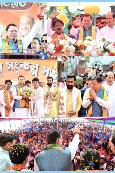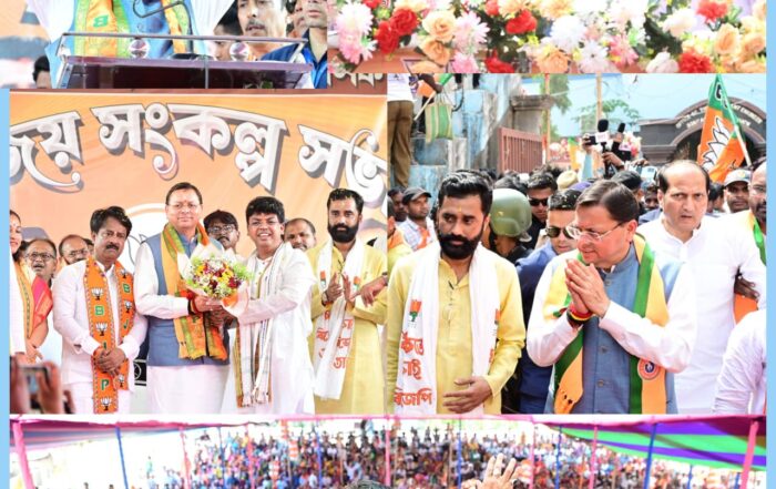 बंगाल के चुनावी रण में उत्तराखंड के ‘धाकड़’ धामी, बनगांव में धुरंधर धामी का दमदार रोड शो