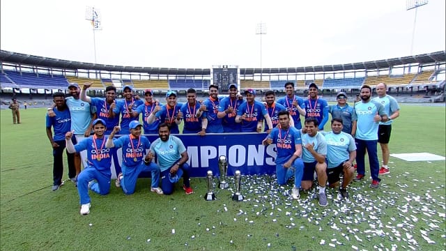 दुबई। लेफ्ट आर्म स्पिनर विक्की ओस्तवाल की घातक गेंदबाजी और सलामी बल्लेबाज अंगक्रिश रघुवंशी के शानदार अर्धशतक की बदौलत भारत ने शुक्रवार को यहां वर्षा बाधित फाइनल मुकाबले में पड़ोसी श्रीलंका को एकतरफा अंदाज में नौ विकेट से हरा कर अंडर-19 एशिया कप 2021 का खिताब जीत लिया। भारत का यह आठवां खिताब है। श्रीलंकाई टीम टॉस जीत कर पहले बल्लेबाजी करते हुए बारिश के बाद निर्धारित 38 ओवर में नौ विकेट के नुकसान पर 106 रन ही बना सकी। जवाब में भारत ने अंगक्रिश और शाइक राशिद के बीच 96 रनों की साझेदारी की बदौलत 21.3 ओवर में ही एक विकेट पर 104 रन बना कर मैच और खिताब जीत लिया। डीएलएस पद्धति के तहत लक्ष्य 102 रन कर दिया गया था। भारत और श्रीलंका के बीच अंडर-19 एशिया कप क्रिकेट टूर्नामेंट के फाइनल में यह पांचवीं भिड़ंत थी। दोनों टीमें इससे पहले 1989, 2003, 2016 और 2018 के फाइनल में आपस में भिड़ीं थी और इन सभी मैचों में भारत ने श्रीलंका को एकतरफा अंदाज में हराया था और आज भी भारत का यही अंदाज रहा।