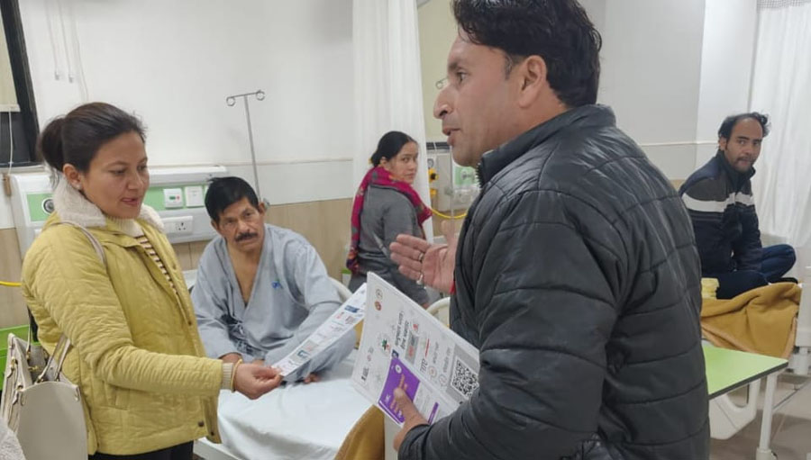 देहरादून। राज्य स्वास्थ्य प्राधिकरण की ओर से देहरादून जनपद के विभिन्न सरकारी व निजी चिकित्सा संस्थानों में आयुष्मान जागरूकता कार्यक्रम चलाया गया। इस अवसर पर अस्पताल में भर्ती मरीज, उनके तीमारदार व ओपीडी में आए लोगों को आयुष्मान व एबीडीएम की विभिन्न जानकारियों से रूबरू कराया गया। साथ ही उन्होंने आयुष्मान योजना की जानकारियों से युक्त पंपलेट व अन्य प्रचार सामाग्री वितरित की गई। राज्य स्वास्थ्य प्राधिकरण के चेयरमैन अरविंद सिंह ह्यांकी व मुख्य कार्यकारी अधिकारी रीना जोशी आईएएस के निर्देशों के अनुपालन में आयुष्मान योजना व आयुष्मान भारत डिजिटल मिशन की महत्वपूर्ण जानकारियों को जन-जन तक पहुंचाने के प्रयास किए जा रहे हैं। प्राधिकरण के सहायक प्रबंधक आईईसी नवीन शुक्ला, नवीन चमोली व एबीडीएम के प्रणव शर्मा द्वारा राजधानी के विभिन्न सरकारी व निजी चिकित्सा संस्थानों में जागरूकता अभियान चलाया। अस्पतालों के आयुष्मान काउंटरों पर भी प्रचार सामाग्री भी वितरण हेतु रखी गई है। कार्यक्रम में आयुष्मान के प्रचार के साथ ही विशेषतौर पर 70 वर्ष या उससे अधिक आयुवर्ग के लोगों के लिए संचालित वय वंदना कार्ड के बारे में विस्तार से समझाया गया। जिन लोगों को आयुष्मान कार्ड नहीं बने उनसे कार्ड बनाने की अपील की गई। ताकि जरूरत पड़ने पर उन्हें योजना का लाभ मिल सके। साथ ही सड़क हादसे में घायल हुई पीड़ितों को डेढ लाख या एक सप्ताह तक जो भी पहले हो के तत्काल उपचार के बारे में जानकारियां दी गई। एबीडीएम के तहत आभा आईडी के महत्व, स्वास्थ्य रिकार्ड का डिजिटलाइजेशन व स्कैन एंड शेयर की व्यवस्था के लाभ व किसी जानकारी, सुझाव शिकायत के निस्तारण के लिए जारी टोल फ्री नंबर के बारे में भी बताया गया। इस मौके पर अस्पतालों में आयुष्मान योजना को लेकर मरीजों को भ्रमित करने वाले तत्वों से सावधान रहने की अपील करती व योजना की गुणवत्ता व सार्वभौमिकता युक्त प्रचार सामाग्री भी कार्यक्रम वितरित की गई।