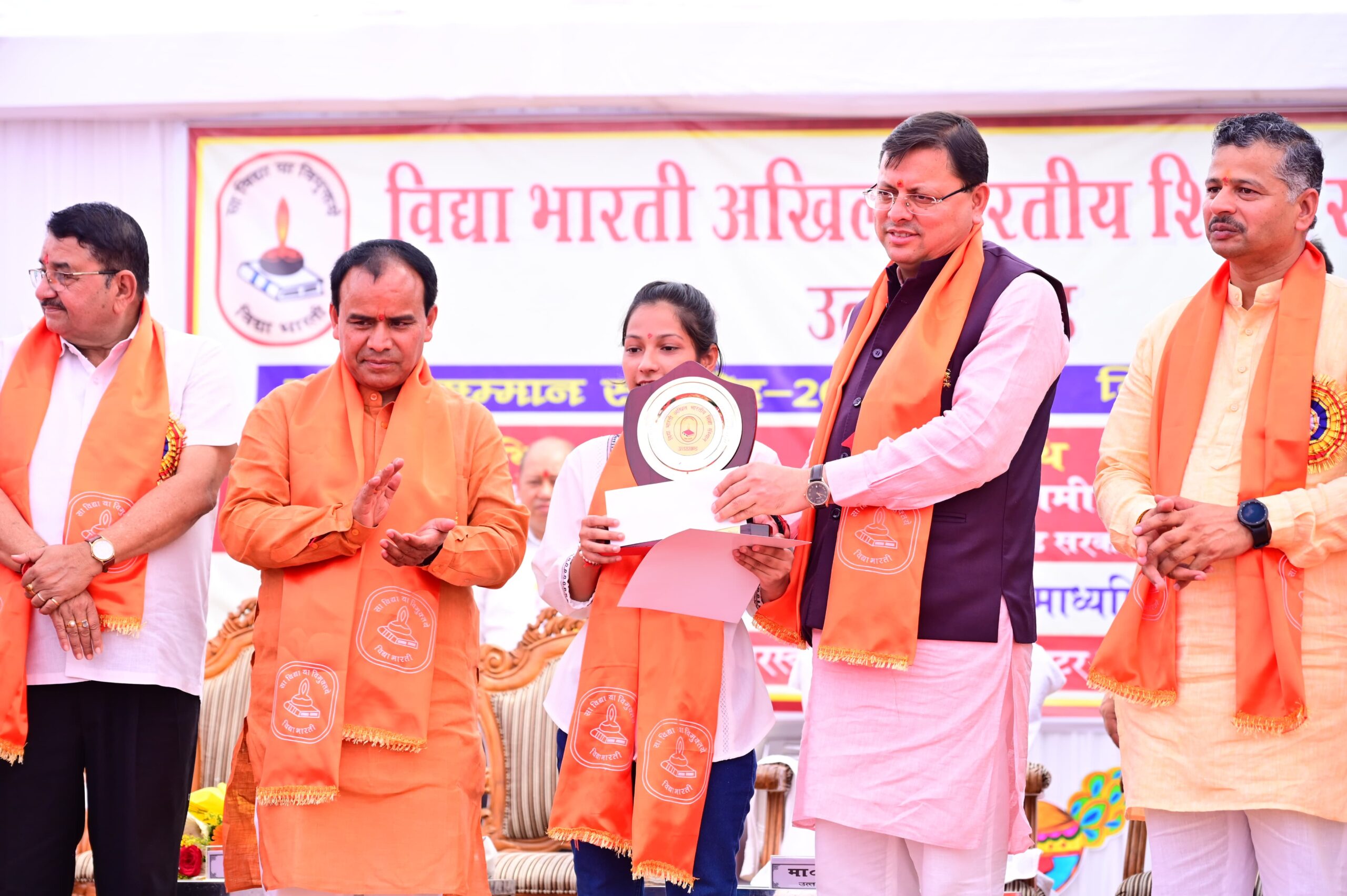 मुख्यमंत्री ने कहा कि उत्तराखण्ड में विद्या भारती द्वारा 500 से भी अधिक विद्यालय संचालित किये जा रहे हैं, जिनमें प्रदेश में 01 लाख से भी अधिक विद्यार्थी शिक्षा ग्रहण कर रहे हैं। इसके साथ ही विद्या भारती द्वारा आदिवासी बहुल क्षेत्रों और राज्य के सीमांत क्षेत्रों में भी सैकड़ों विद्यालय खोले गये हैं। भारत सरकार द्वारा विद्या भारती के सात स्कूलों को सैनिक स्कूल के रूप में स्थापित करने के लिए चयनित किये जाने पर मुख्यमंत्री ने प्रसन्नता व्यक्त की।