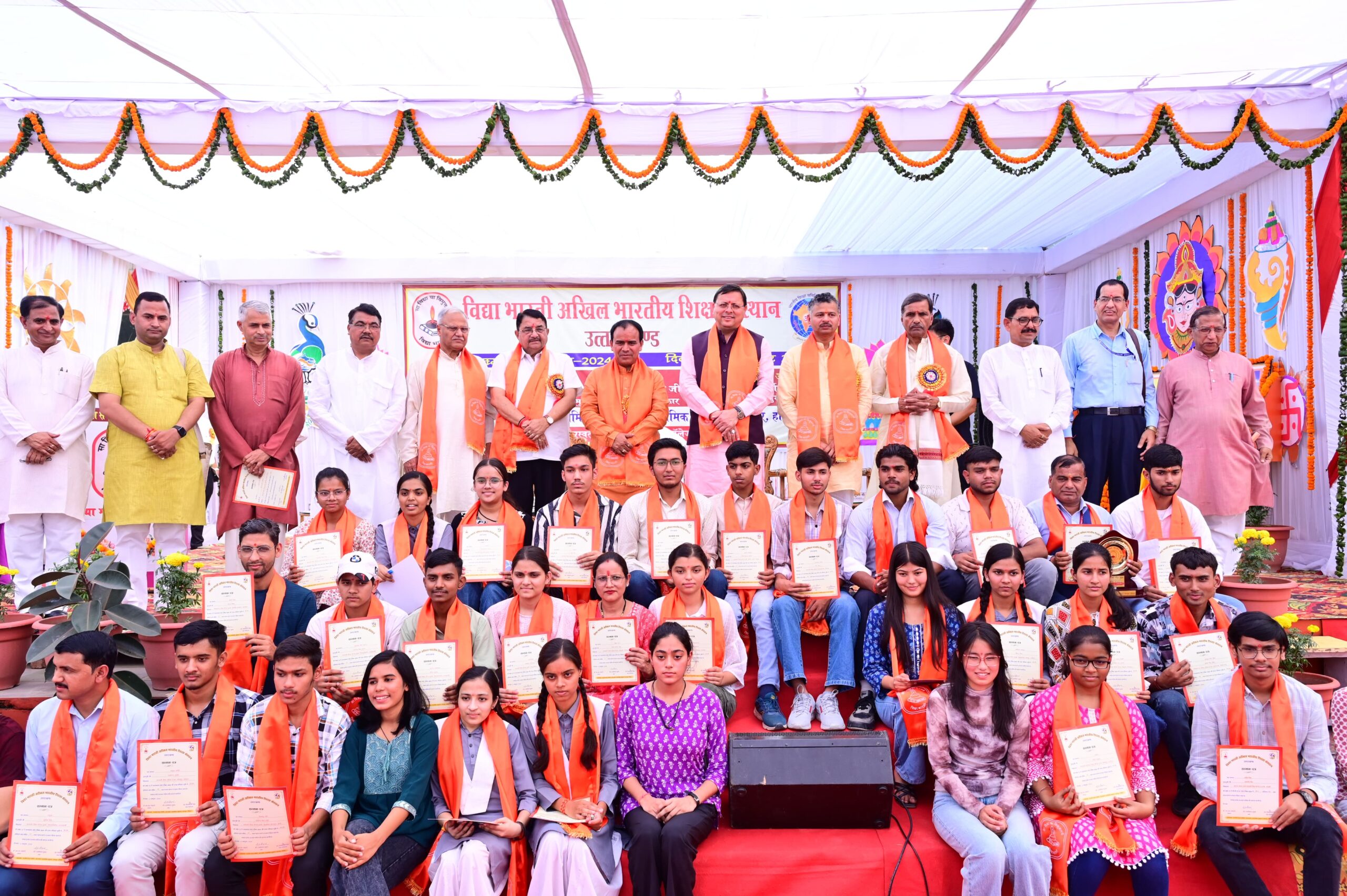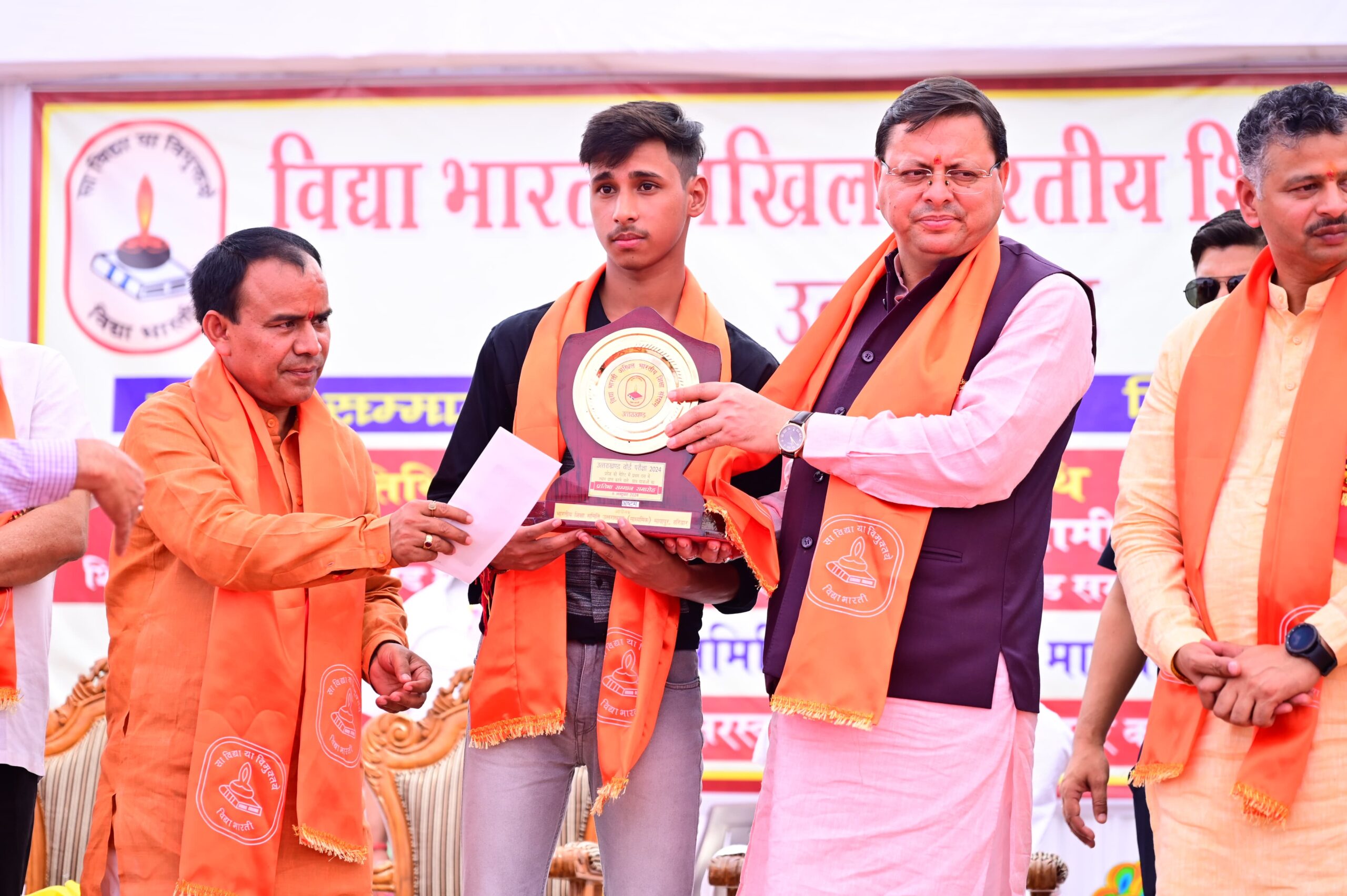 मुख्यमंत्री पुष्कर सिंह धामी ने रविवार को गोवर्धन सरस्वती विद्या मंदिर, सुमन नगर, धर्मपुर में विद्या भारती अखिल भारतीय शिक्षा संस्थान, उत्तराखण्ड द्वारा आयोजित कार्यक्रम में प्रतिभाग किया। इस अवसर पर उन्होंने उत्तराखण्ड बोर्ड परीक्षा 2024 की हाईस्कूल और इण्टरमीडिएट की परीक्षा में विद्या मंदिर के शीर्ष 10 स्थान प्राप्त करने वाले छात्र-छात्राओं को सम्मानित किया। इस अवसर पर मुख्यमंत्री ने घोषणा की कि गोवर्धन सरस्वती विद्या मंदिर, इण्टर कॉलेज सुमन नगर, धर्मपुर में भवन निर्माण के लिए 60 लाख रूपये की आर्थिक सहायता प्रदान की जायेगी।