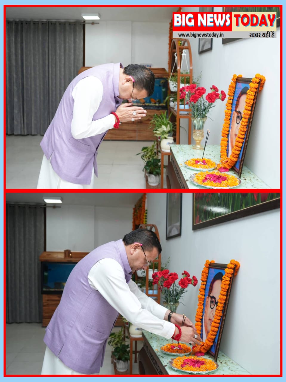 देहरादून। (M. Faheem ‘Tanha’): मुख्यमंत्री पुष्कर सिंह धामी ने भारतीय संविधान के निर्माता एवं ‘भारत रत्न’ बाबा साहेब डॉ. भीमराव आंबेडकर जी की जयंती के अवसर मुख्यमंत्री आवास में उनके चित्र पर पुष्प अर्पित कर उनका भावपूर्ण स्मरण किया।