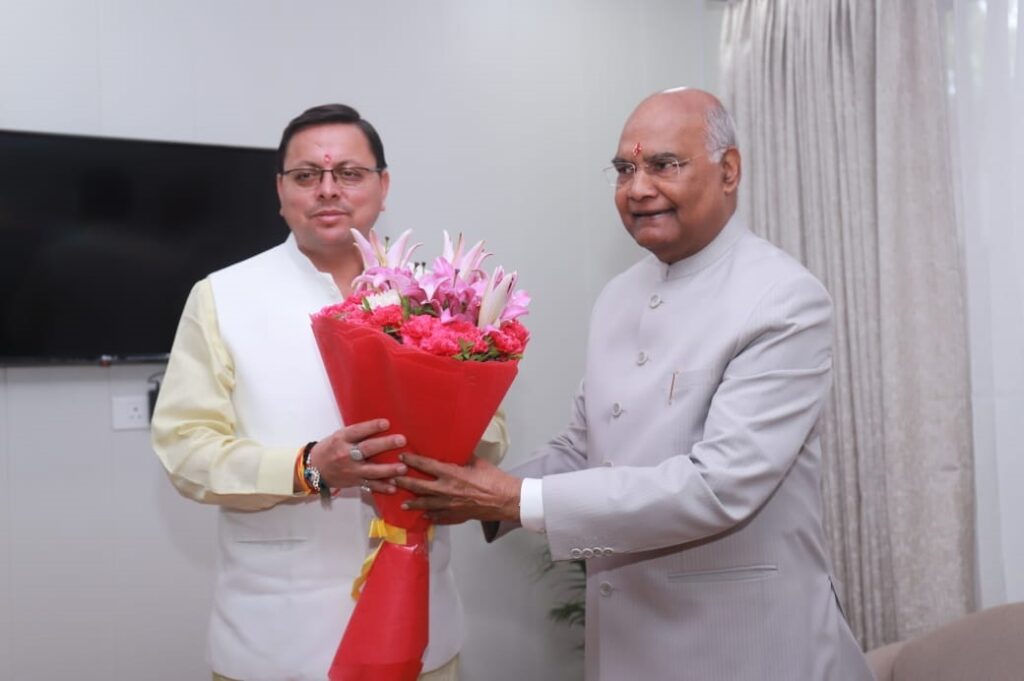 मुख्यमंत्री पुष्कर सिंह धामी ने पूर्व राष्ट्रपति रामनाथ कोविंद से की शिष्टाचार भेंट Dehradun Delhi Uttarakhand August 11, 2022August 11, 2022Big News Today नई दिल्ली/देहरादून, बिग न्यूज़ टूडे: मुख्यमंत्री पुष्कर सिंह धामी ने नई दिल्ली में पूर्व राष्ट्रपति रामनाथ कोविंद से शिष्टाचार भेंट की।