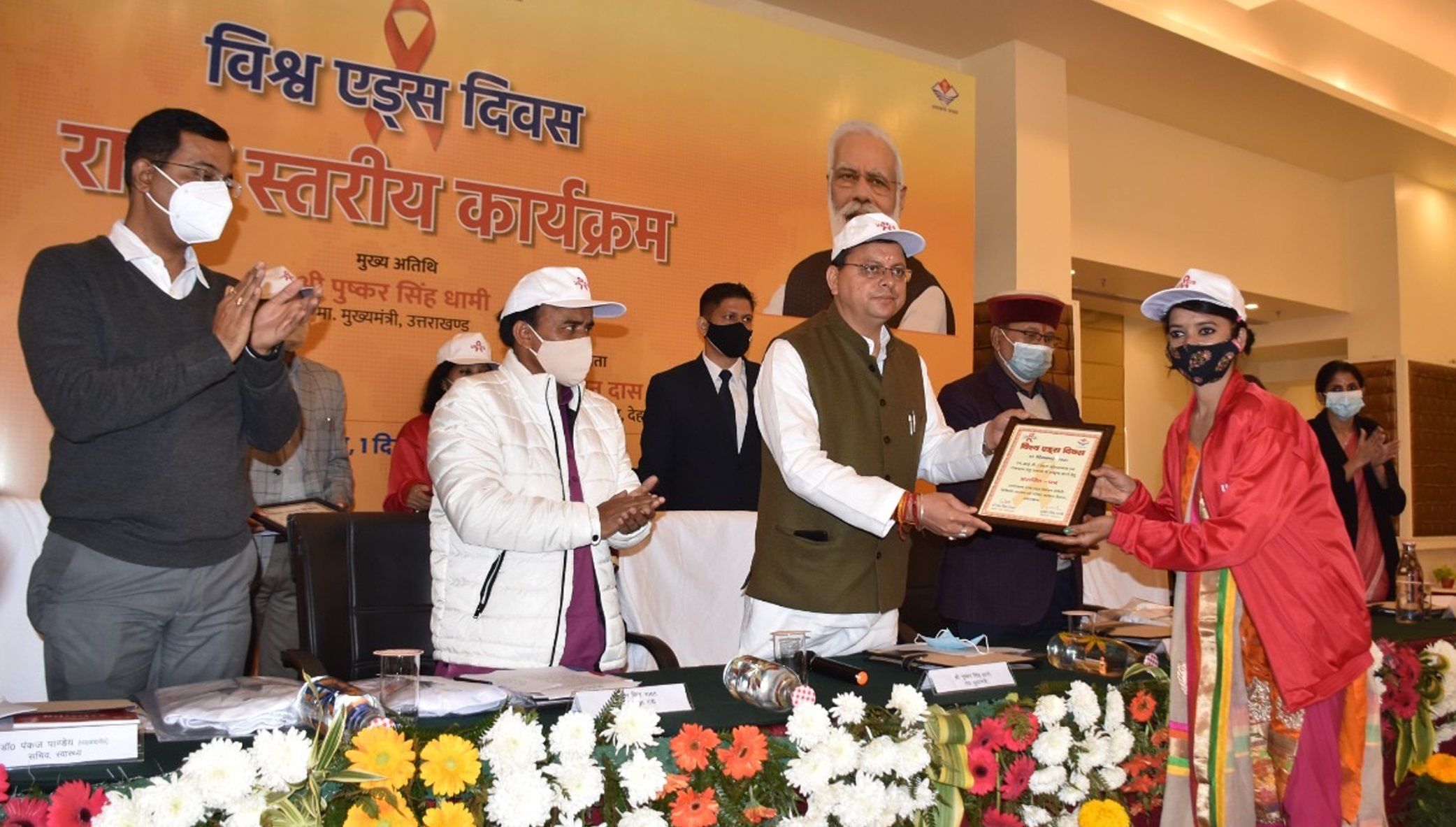देहरादून, बिग न्यूज़ टूडे। मुख्यमंत्री पुष्कर सिंह धामी ने बुधवार को सुभाष रोड स्थित होटल में विश्व एड्स दिवस के अवसर पर आयोजित कार्यक्रम में प्रतिभाग किया। इस अवसर पर मुख्यमंत्री ने एड्स से बचाव के लिए विशेष प्रयास करने एवं जागरूकता लाने वालों को प्रशस्ति पत्र देकर सम्मानित भी किया। मुख्यमंत्री पुष्कर सिंह धामी ने कहा कि आज का दिन हमें एड्स जैसी गंभीर बीमारी से जूझ रहे लोगों के साथ पूरी एकजुटता के साथ खड़ा के लिए प्रेरित करता है। लोगों को जागरूक करने के साथ-साथ सशक्त बनाने की भी आवश्यकता है, ताकि वे एचआईवी के प्रभाव से खुद को समय रहते बचा सकें। इस बीमारी और इसके इलाज में परामर्श एक बहुत ही महत्वपूर्ण प्रक्रिया है। एचआईवी के बारे में सटीक, पूर्ण और सुसंगत जानकारी प्रदान करने व इसके इलाज पर जोर देने के लिए लगातार प्रयास होने चाहिए। एड्स के प्रति प्रदेश के गांव-गांव और दूरस्थ इलाकों में भी जागरूकता अभियान लगातार चलते रहने चाहिए। यह एक बहुत बड़ी जिम्मेदारी है और हम सभी को मिलकर इसे निभाना होगा। राज्य सरकार लगातार इस दिशा में काम कर रही है।