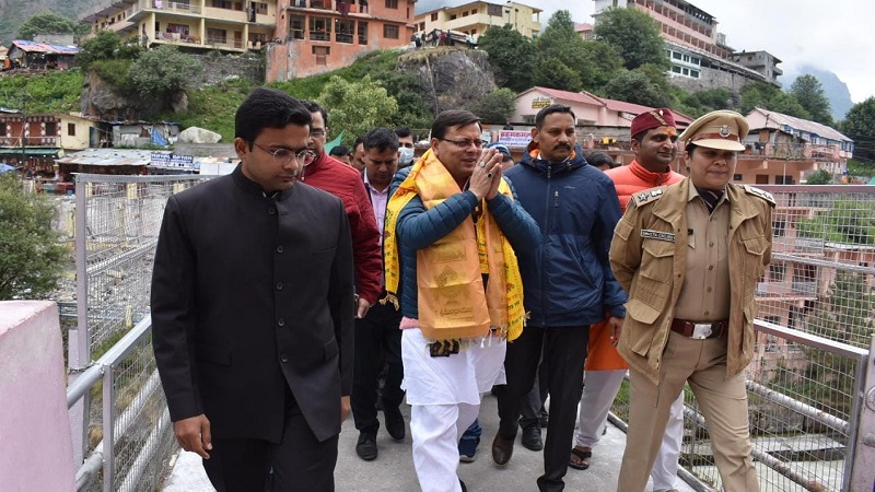 मुख्यमंत्री पुष्कर सिंह धामी ने बद्रीनाथ पहुंचकर मास्टर प्लान के तहत संचालित कार्यों का किया स्थलीय निरीक्षण