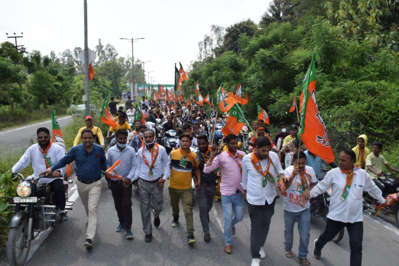 जन आशीर्वाद रैली के माध्यम से चुनावी अभियान की शुरुआत कर रही भाजपा रैली में उमड़ी भीड़ देख उत्साहित नजर आ रही है।जन आशीर्वाद यात्रा श्यामपुर के हाट बाजार से 11 बजे प्रारंभ हुई, जिसका जनार्दन मार्केट, साई आश्रम, आडवाणी मार्केट, दुर्गा मंदिर आईडीपीएल, मालवीय नगर, काली की ढाल, कोयल घाटी, साईं घाट, चुंगी, तिलक रोड, वैष्णो प्लाजा, घाट तीराहा, देहरादून तीराहा, उर्वशी कंपलेक्स एवं व्यापार सभा में जगह-जगह हजारों कार्यकर्ताओं एवं स्थानीय जनता द्वारा यात्रा का जोरदार स्वागत किया गया ।जन आशीर्वाद रैली में मुख्यमंत्री ने राज्य के चौमुखी विकास के लिए जनता से आशीर्वाद मांगा। रैली का पुष्प वर्षा से कार्यकर्ताओं एवं स्थानीय जनता ने जोरदार स्वागत किया।