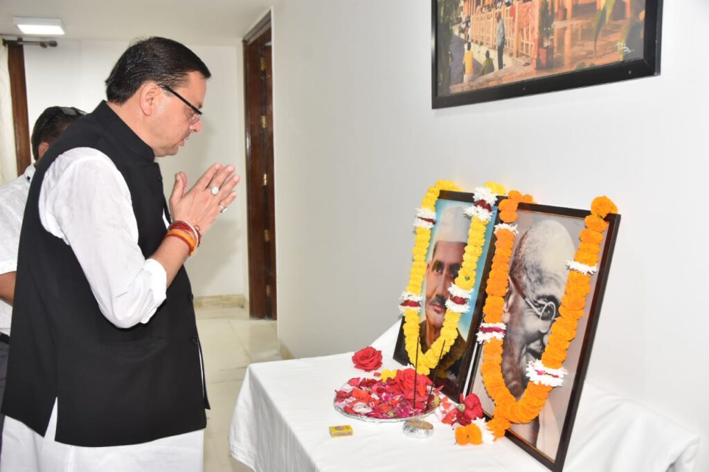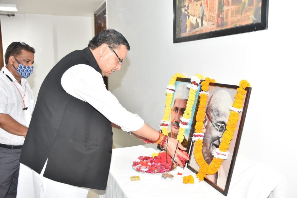 सीएम धामी ने राष्ट्रपिता महात्मा गांधी और पूर्व प्रधानमंत्री लाल बहादुर शास्त्री श्रद्धांजलि दी Uttarakhand October 2, 2021October 2, 2021Big News Today Big News Today Bureau मुख्यमंत्री पुष्कर सिंह धामी ने मुख्यमंत्री आवास देहरादून में राष्ट्रपिता महात्मा गांधी और पूर्व प्रधानमंत्री लाल बहादुर शास्त्री के चित्र पर श्रद्धासुमन अर्पित कर उन्हें श्रद्धांजलि दी।