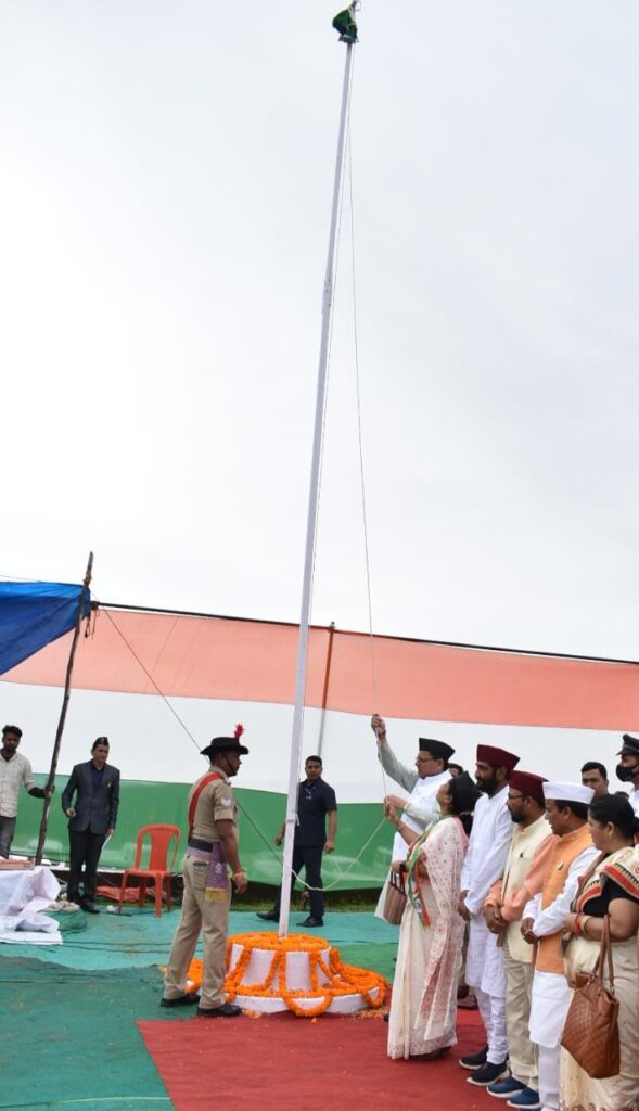 मुख्यमंत्री पुष्कर सिंह धामी ने स्वतंत्रता की 75वीं वर्षगांठ के अवसर पर ग्रीष्मकालीन राजधानी, भराड़ीसैंण, गैरसैंण विधानसभा भवन परिसर में आयोजित कार्यक्रम में प्रतिभाग करते हुए ध्वजारोहण किया। इस अवसर पर मुख्यमंत्री पुष्कर सिंह धामी ने गैरसैंण नगर हेतु पेयजल योजना का निमार्ण कार्य , औषधीय एवं संगध पादप संस्थान औद्योगिकी एवं वानिकी विश्वविद्यालय मेहलचौरी गैरसैंण में कार्यालय भवन कक्षा कक्ष एवं सभागार का निमार्ण कार्य, कर्णप्रयाग में पंडित दीनदयाल उपाध्याय पार्क का सुधारीकरण एवं सौन्दर्यकरण किए जाने की घोषणा की। इस दौरान उन्होंने विधानसभा परिसर गैरसैंण में पौधारोपण भी किया।