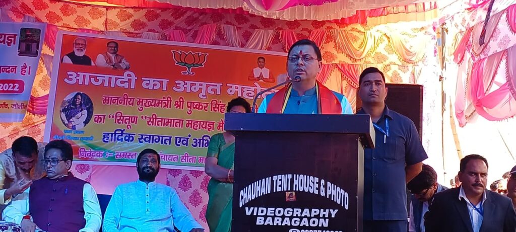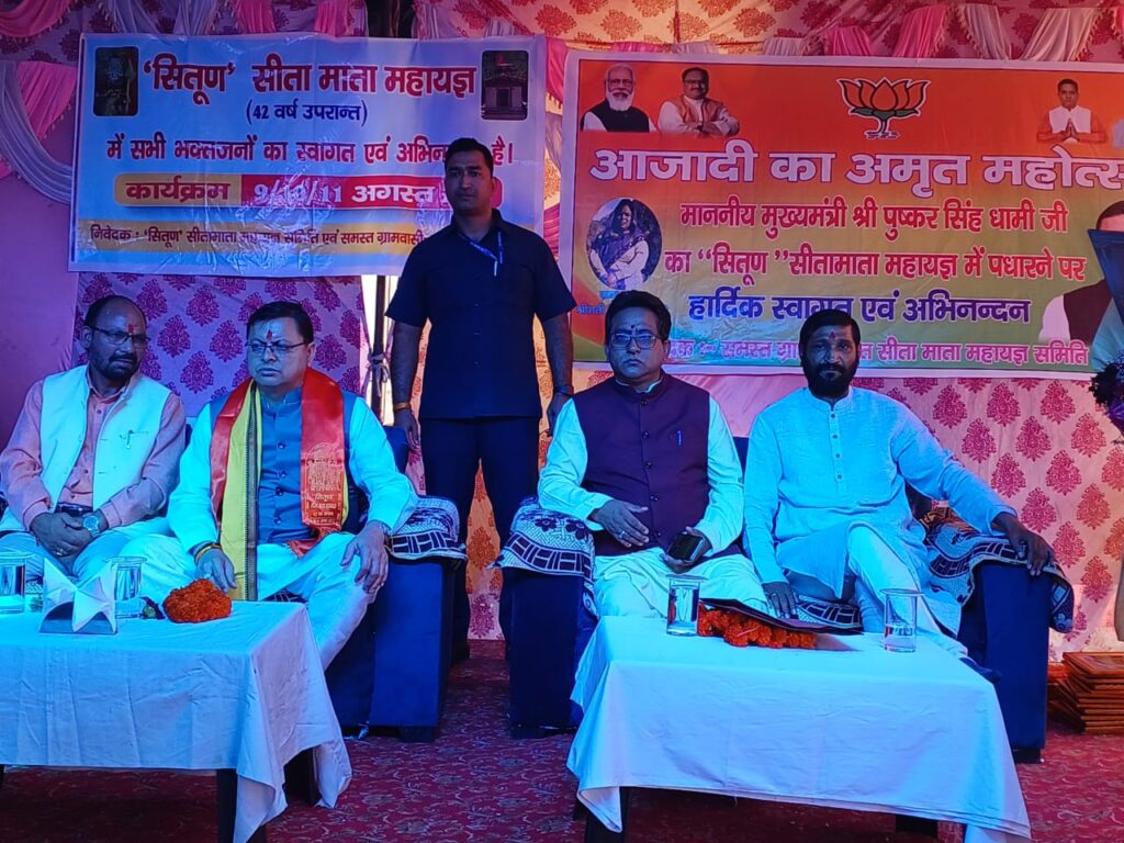 देहरादून, बिग न्यूज़ टूडे: मुख्यमंत्री पुष्कर सिंह धामी ने बुधवार को जोशीमठ विकासखण्ड के ग्राम पंचायत बड़ागांव में सीता-माता (सितूण) अखण्ड महायज्ञ कार्यक्रम में प्रतिभाग किया। मुख्यमंत्री ने कहा कि बडागांव में 42 साल बाद सीता माता का महायज्ञ हो रहा है, हम सौभाग्यशाली हैं कि इसके साक्षी बन रह हैं। उन्होंने कहा कि सब पर भगवान श्री राम एवं माता सीता का आशीर्वाद एवं कृपा बनी रहे। मुख्यमंत्री ने कहा कि बडागांव में माता सीता मंदिर के निर्माण के लिए धनराशि दी जायेगी।