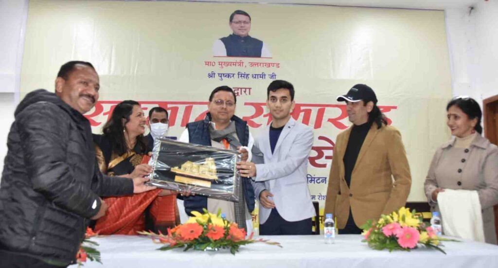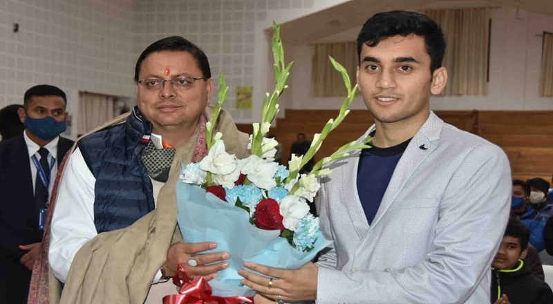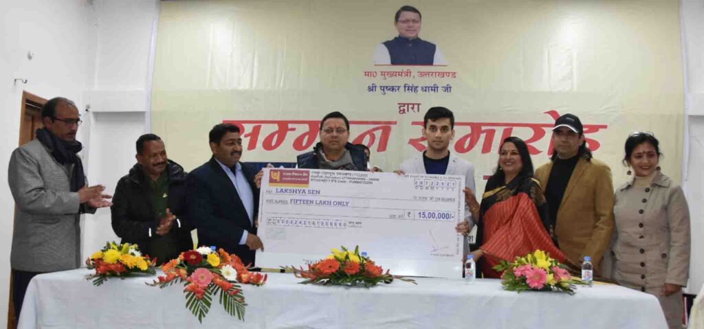 देहरादून, बिग न्यूज़ टूडे। मुख्यमंत्री पुष्कर सिंह धामी ने रविवार को मुख्यमंत्री आवास स्थित मुख्य सेवक भेंट कक्ष में भारत के बैटमिंटन खिलाड़ी लक्ष्य सेन को सम्मानित कर उन्हें 15 लाख की धनराशि का चेक भेंट किया। मुख्यमंत्री ने लक्ष्य सेन के माता पिता को भी इस अवसर पर सम्मानित किया। मुख्यमंत्री ने कहा कि लक्ष्य सेन ने विश्व बैडमिंटन चौंपियनशिप में पदक जीतकर देश एवं प्रदेश का नाम रोशन किया है। उन्होंने कहा कि लक्ष्य सेन आगामी विश्व बैडमिंटन चौंपियनशिप में गोल्ड मेडल जीतकर देश व प्रदेश का नाम रोशन करें तथा लक्ष्य सेन उस लक्ष्य को प्राप्त करें इसकी हम सब कामना करते हैं।