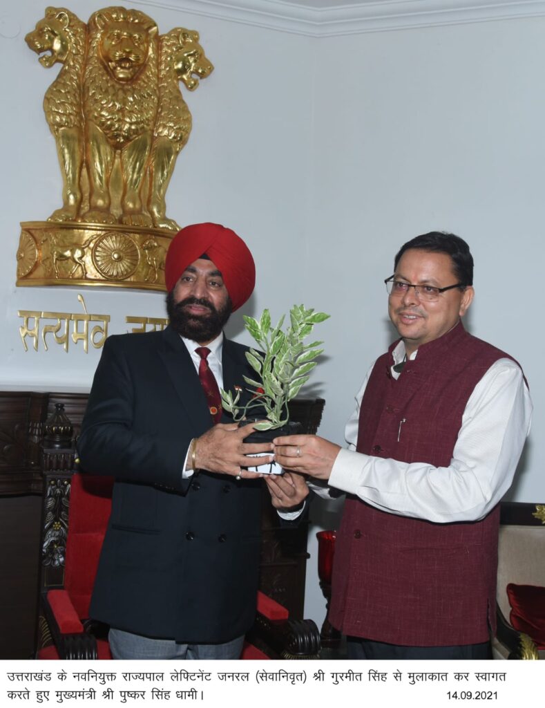 उत्तराखंड के नवनियुक्त राज्यपाल गुरमीत सिंह से मिले मुख्यमंत्री पुष्कर सिंह धामी