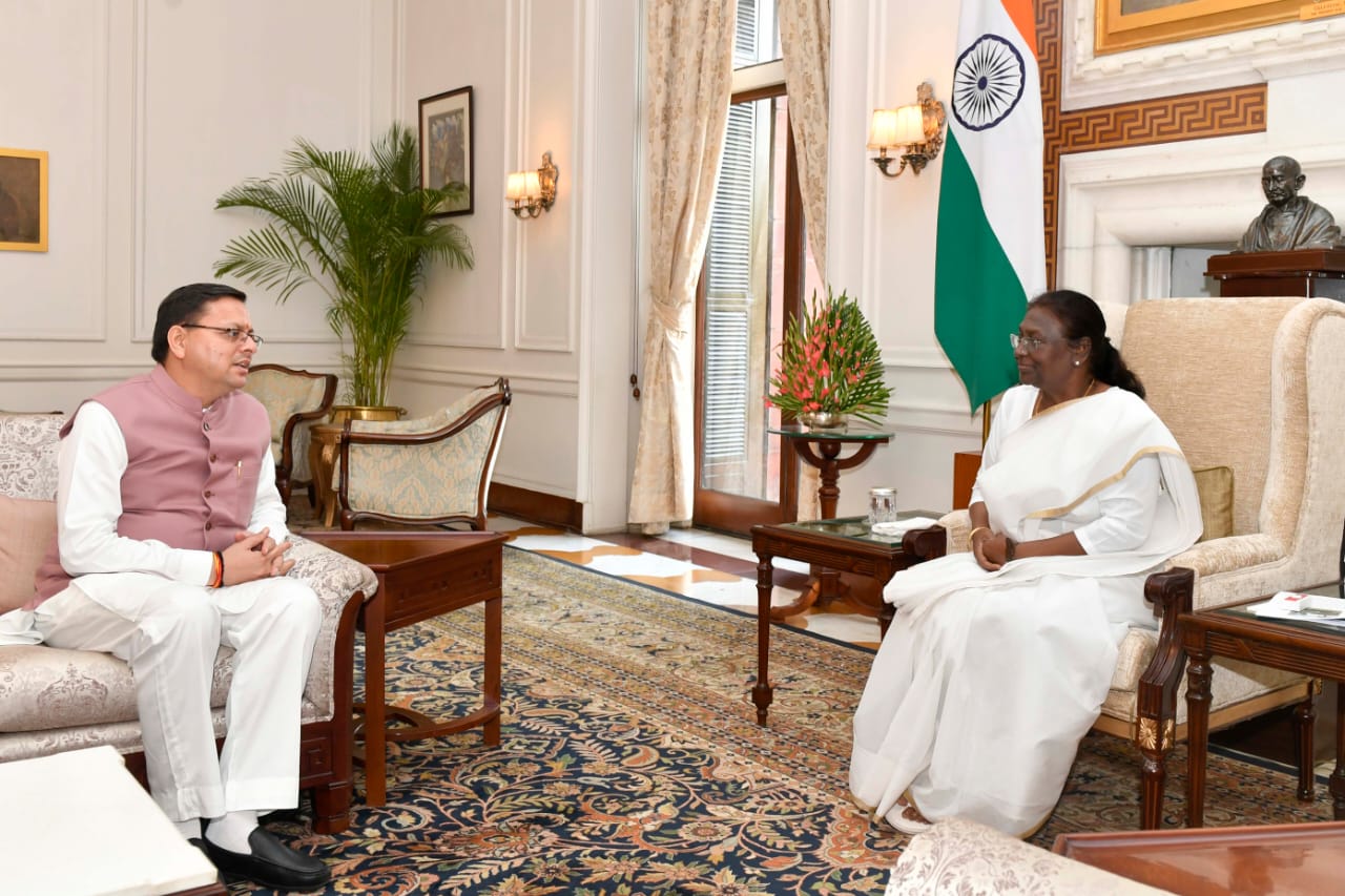 मुख्यमंत्री पुष्कर सिंह धामी ने राष्ट्रपति द्रौपदी मुर्मू से मुलाकात कर ऐतिहासिक जीत होने पर दी बधाई