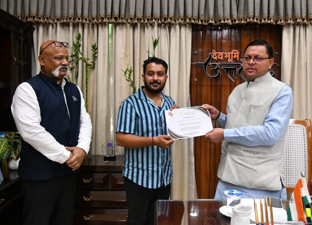 देहरादून, बिग न्यूज़ टूडे: मुख्यमंत्री पुष्कर सिंह धामी ने शनिवार को  मुख्यमंत्री कैम्प कार्यालय  में सूचना प्रोद्योगिक विकास  एजेंसी में स्थित ड्रोन एप्लीकेशन रिसर्च सेंटर के द्वारा आयोजित “Shot on my drone” प्रतियोगिता मे विजेता प्रतिभागियों को पुरस्कृत किया।  यह प्रतियोगिता 22 जून को आयोजित की गयी थी। जिसमे सौ से अधिक  प्रतिभागियों ने  प्रतिभाग किया था।