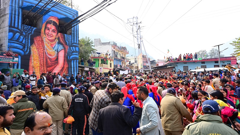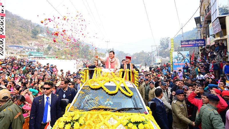 इस दौरान यहां हजारों की संख्या में स्थानीय जनता ने मुख्यमंत्री धामी का स्वागत किया।