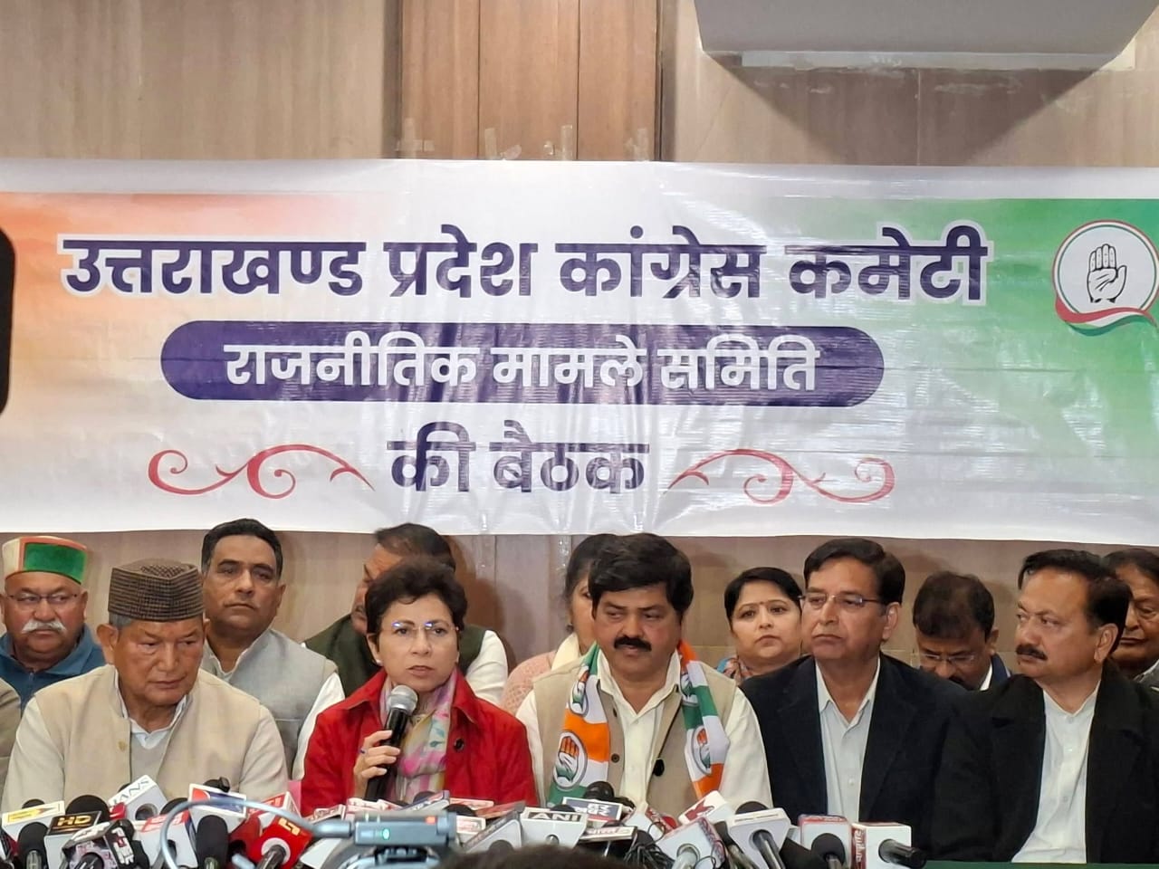 देहरादून। उत्तराखंड कांग्रेस प्रभारी कुमारी सैलजा राज्य के राजनीतिक मिजाज व संगठनात्मक गतिविधियों की टोह लेने बृहस्पतिवार को दून पहुंचीं। कांग्रेस मुख्यालय में प्रदेश के वरिष्ठ नेताओं के साथ पॉलिटिकल अफेयर कमेटी की बैठक में प्रदेश कार्यकारिणी के गठन के साथ आगामी संगठनात्मक रणनीति पर चर्चा की। इस दौरान उन्होंने राजधानी देहरादून में पत्रकार वार्ता भी की।  उन्होंने प्रदेश भर में अंकिता भंडारी हत्याकांड में न्याय की मांग के लिए चल रहे आंदोलन व मनरेगा योजना को समाप्त करने समेत अन्य मुद्दों पर चर्चा की। इस अवसर पर गुरदीप सप्पल, पूर्व मुख्यमंत्री हरीश रावत, संचालन समिति के अध्यक्ष प्रीतम सिंह, चुनाव प्रबंधन समिति के अध्यक्ष डॉ हरक सिंह रावत, पूर्व अध्यक्ष करन माहरा उपस्थित थे।