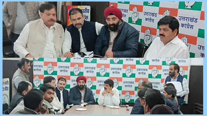 देहरादून (8 दिसम्बर, 2025) I अखिल भारतीय कांग्रेस के आह्रवान पर 14 दिसम्बर 2025 को नई दिल्ली के राम लीला मैदान में होने वाली महारैली की तैयारी के लिए उत्तराखण्ड प्रदेश कांग्रेस कमेटी के अध्यक्ष गणेश गोदियाल की अध्यक्षता में कांग्रेसजनों की बैठक प्रदेश कांग्रेस कमेटी कार्यालय, राजीव भवन, 21 राजपुर रोड़, देहरादून में आयोजित की गई। बैठक में उपस्थित सभी कांग्रेस नेताओं ने रैली की सफलता हेतु अपने-अपने सुझाव दिये।
