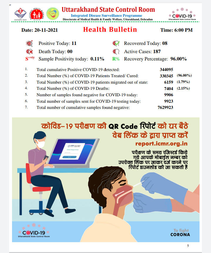 Date: 20-11-2021 Health Bulletin Time: 6:00 PM
