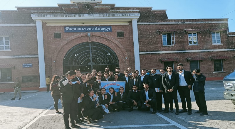 विभागाध्यक्ष डॉ पारुल दीक्षित ने बताया कि विधि विद्यार्थियों के लिए न्यायिक प्रक्रिया में शामिल सभी स्थानों के बारे में वृहद जानकारी होनी चाहिए। इसी उद्देश्य से विभाग पिछले वर्ष छात्रों का एक शिविर नैनीताल उच्च न्यायालय में भी लगाया गया था। आज जेल के भ्रमण से छात्रों को वहुत सारी व्यवहारिक जानकारियां उपलब्ध हो सकी। विभाग अपनी सामाजिक जिम्मेदारियों के मद्देनजर विधिक सहायता शिविरों का आयोजन भी समय समय पर करता रहता है। सुद्धोवाला कारगर भ्रमण में विभागाध्यक्ष डॉ पारुल दीक्षित के अलावा वर्षा धीमान, राजा रस्तोगी,अंकित चमोली, आएशा तोमर, प्रीति, अभिनव, शुभम, आदि छात्र छात्राओं ने प्रतिभाग किया।