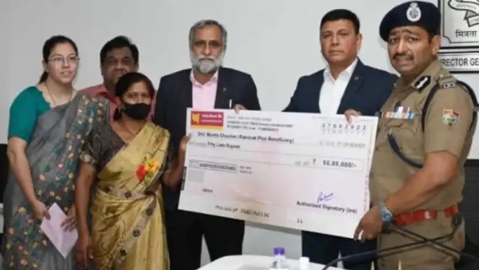 देहरादून, बिग न्यूज़ टूडे। (राहुल कुमार) पुलिस महानिदेशक उत्तराखण्ड अशोक कुमार की उपस्थिति में मंगलवार संजय काण्डपाल, जोनल मैनेजर, पंजाब नेशनल बैंक देहरादून जोन द्वारा रक्षक प्लस योजना के अन्तर्गत सड़क दुर्घटना में जान गंवाने वाले जनपद देहरादून में तैनात ओ.पी. विजय चौहान की पत्नी ममता चौहान को पंजाब नेशनल बैंक की ओर से 50 लाख रूपए का चेक दिया गया।