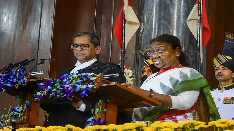 उन्होंने कहा कि राष्ट्रपति के पद तक पहुँचना, मेरी व्यक्तिगत उपलब्धि नहीं है, ये भारत के प्रत्येक गरीब की उपलब्धि है. मैं देश की ऐसी पहली राष्ट्रपति भी हूँ जिसका जन्म आज़ाद भारत में हुआ है. उन्होंने कहा कि संथाल क्रांति, पाइका क्रांति से लेकर कोल क्रांति और भील क्रांति ने स्वतंत्रता संग्राम में आदिवासी योगदान को और सशक्त किया था. सामाजिक उत्थान एवं देश-प्रेम के लिए ‘धरती आबा’ भगवान् बिरसा मुंडा जी के बलिदान से हमें प्रेरणा मिली थी.