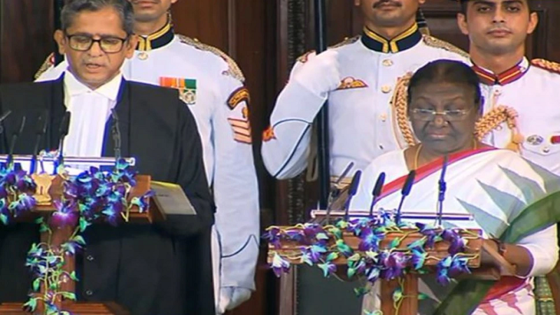 बिग न्यूज़ टूडे: द्रौपदी मूर्मु ने देश की 15वीं राष्ट्रपति के तौर पर सोमवार की सुबह संसद के सेंट्रल हॉल में शपथ ले ली. इसके बाद देश को पहली महिला आदिवासी राष्ट्रपति मिली. CJI एन वी रमन्ना ने उन्हें पद की शपथ दिलाई. राष्ट्रपति पद की शपथ लेने के बाद अपने पहले संबोधन में द्रौपदी मुर्मू ने कहा कि उनके लिए देश के युवाओं और महिलाओं का हित सर्वोपरि होगा. उन्होंने कहा कि वे खुद को गौरवान्वित महसूस कर रही हैं. इससे पहले, प्रधानमंत्री नरेंद्र मोदी, उप राष्ट्रपति वेंकैया नायडू समेत अन्य कई बड़े नेता संसद भवन पहुंचे. शपथ लेने से पहले द्रौपदी मूर्मू राजघाट पहुंची और वहां पर महात्मा गांधी की श्रद्धांजलि अर्पित की.