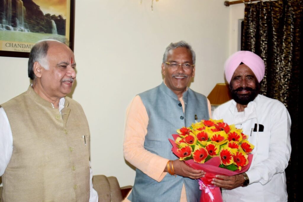बलदेव सिंह औलख जी से शिष्टाचार भेंट की। इस दौरान मंत्री आशुतोष टंडन और मंत्री बलदेव औलख ने पूर्व सीएम त्रिवेंद्र का गर्मजोशी से स्वागत किया।