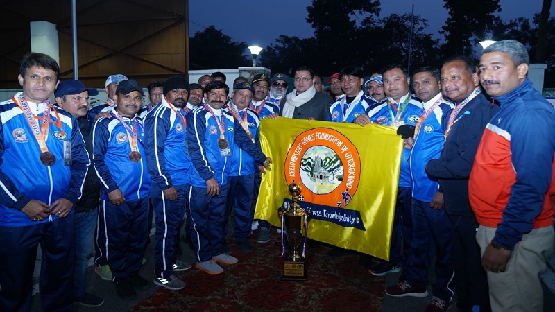 इस अवसर पर मुख्यमंत्री द्वारा उत्तराखण्ड के 40 प्लस खेलो मास्टर्स इंडिया टीम देहरादून फुटबाल एकेडमी के नेपाल के पोखरा मे आयोजित होने वाले इंटरनेशनल वेटर्नल फुटबाल चौंपियनशिप मे प्रतिभाग करने वाले 24 ऑफिसियल और खिलाडी टीम का फ्लेग ऑफ़ किया गया। मुख्यमंत्री ने सभी को शुभकामनाएं देते हुए कहा कि फुटबॉल राज्य का प्रमुख खेल है। हमारे खिलाडी अपनी प्रतिभा के बल पर विभिन्न खेलों में राज्य का नाम रोशन कर रहे है। उन्होंने कहा कि राज्य सरकार विभिन्न खेलों को बढ़ावा देने के लिये संकल्पित है।