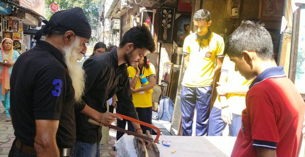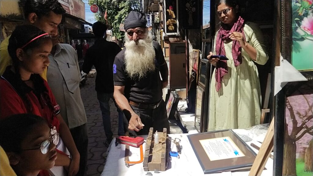 प्रसिद्ध फ्रेमर बावा इंद्र मोहन और उनके सहायक सुनील रावत ने बच्चों को बड़े प्यार से फ्रेमिंग के औजारों और विधा से परिचित कराया और आसन तरीके से बच्चों द्वारा बनाई गई पेटिंग्स को फ्रेम करना सिखाया।