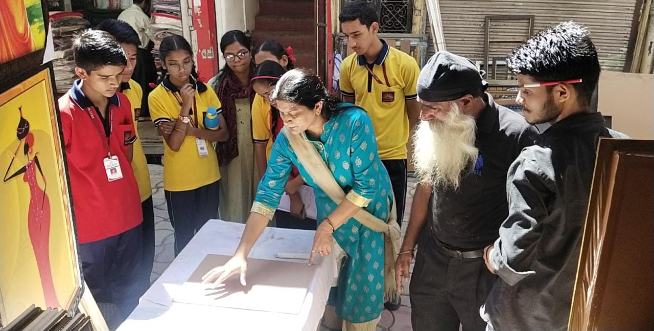 प्रसिद्ध फ्रेमर बावा इंद्र मोहन और उनके सहायक सुनील रावत ने बच्चों को बड़े प्यार से फ्रेमिंग के औजारों और विधा से परिचित कराया और आसन तरीके से बच्चों द्वारा बनाई गई पेटिंग्स को फ्रेम करना सिखाया।