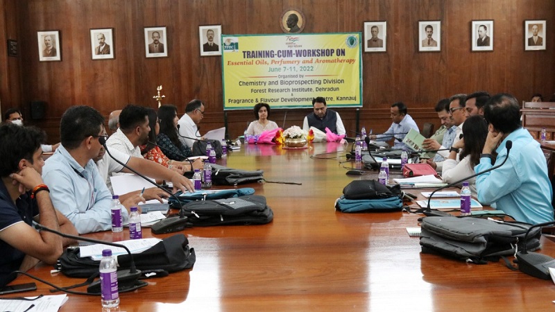 कार्यक्रम की शुरुआत प्रशिक्षण समन्वयक, डॉ वी. के. वार्ष्णेय, के स्वागत भाषण से हुई। पाठ्यक्रम निदेशक तथा समापन डॉ. विनीत कुमार, वैज्ञानिक-जी, सी एंड बीपी डिवीजन, एफआरआई द्वारा दिए गए धन्यवाद प्रस्ताव के साथ हुआ। उद्घाटन समारोह में एफआरआई के प्रभागाध्यक्षों और सी एंड बीपी डिवीजन के डॉ. एस.एस. बिष्ट, डॉ के मुरली, स्टाफ और शोधार्थियों ने भाग लिया। कार्यक्रम का संचालन श्रीमती राधिका, रिसर्च स्कॉलर, सी एंड बीपी डिवीजन ने किया। यह प्रशिक्षण सह कार्यशाला 11 जून, 2022 तक जारी रहेगी और प्रतिभागियों को सुगन्धित तेलों के प्रसंस्करण, गुणवत्ता मूल्यांकन और चिकित्सीय लाभों और इत्र और अरोमाथेरेपी में उनके अनुप्रयोगों के मौलिक और व्यावहारिक पहलुओं के बारे में सुगंध उद्योग के विशेषज्ञों, वैज्ञानिकों और अरोमा थेरेपिस्ट द्वारा व्याख्यान और व्यावहारिक प्रदर्शनों के माध्यम से विस्तृत जानकारी प्रदान करेगी।