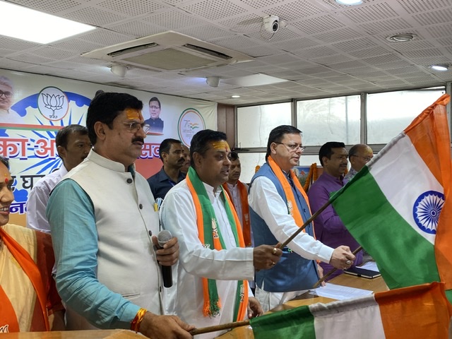 भाजपा प्रदेश कार्यालय में मुख्यमंत्री पुष्कर सिंह धामी ने रिबन काटकर ‘ हर घर तिरंगा अभियान की शुरुआत की ।