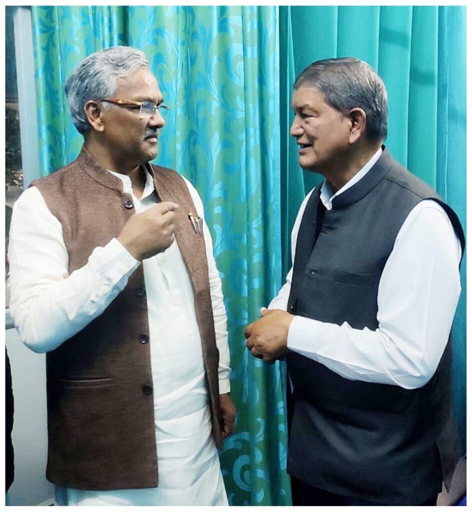 पूर्व मुख्यमंत्री त्रिवेंद्र सिंह रावत और पूर्व मुख्यमंत्री हरीश रावत आज लंबे अंतराल के बाद डिफ़ेंस कॉलोनी में किसी के आवास में मिले। त्रिवेंद्र सिंह रावत ने कहा कि आदरणीय हरीश रावत जी से चलते- चलते भेंट हुई। कोरोना के पश्चात उनके स्वास्थ्य में सुधार देखकर संतोष हुआ।स्वास्थ्य के बारे में पूछने पर उन्होंने अपने अंदाज़ में कहा – मैं स्वस्थ हूँ।
