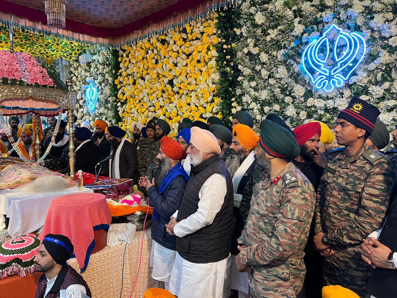 आज इस विशेष अवसर पर पंज प्यारों की अगुवाई में जत्थे ने ‘‘जो बोले सो निहाल’’ के जयकारों व बैंड बाजों की धुनों के साथ कीर्तन करते हुए यात्रा के अंतिम पड़ाव श्री हेमकुण्ट साहिब पहुंचकर गुरू महाराज के श्री चरणों में अपनी हाजिरी भरी। गुरूद्वारा प्रबंधक सरदार गुरनाम सिंह व मुख्य ग्रंथी भाई मिलाप सिंह द्वारा संगतों के साथ मिलकर प्रातः 9ः30 बजे पवित्र गुरू ग्रंथ साहिब जी के पावन स्वरूपों को सुखासन स्थल से दरबार साहिब में लाया गया तथा पावन प्रकाश करते हुए अरदास की और गुरू महाराज का पहला हुकमनामा जारी किया गया। मुख्य ग्रंथी द्वारा प्रातः 10.15 बजे सुखमनी साहिब जी का पाठ किया गया। इसके पश्चात प्रातः 11.30 बजे से रागी जत्थों द्वारा गुरबाणी कीर्तन का गुणगान किया गया जिससे कि दरबार साहिब में उपस्थित संगतें प्रसन्नचित्त होकर निहाल हो गईं। साथ ही निशान साहिब जी के चोले की सेवा भी चलती रही। समस्त गुरूद्वारा परिसर व दरबार हॉल को फूलों व अन्य साजों सामान से सजाया गया।