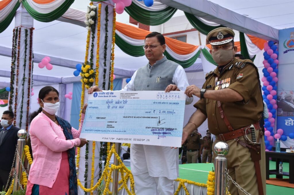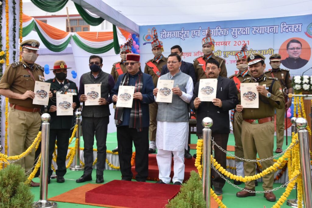 मुख्यमंत्री पुष्कर सिंह धामी ने भव्य परेड की सलामी ली और विभागीय स्मारिका का विमोचन किया। इस अवसर पर मुख्यमंत्री ने होमगार्ड्स तथा नागरिक सुरक्षा विभाग के  अधिकारियों को उनके कार्यों के प्रमाण-पत्र से सम्मानित किया। मुख्यमंत्री ने कोविड ड्यूटी के दौरान दिवंगत होमगार्ड स्व० रोशन सिंह की पत्नी श्रीमती बबीता को 02 लाख रूपये की राशि का चेक प्रदान किया। होमगार्ड राजबहादुर को 01 लाख रूपये की सहायता राशि का चेक प्रदान किया गया।
