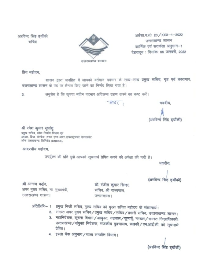 आईएएस अधिकारी आरके सुधांशु को प्रमुख सचिव गृह एवं कारागार की जिम्मेदारी मिली,