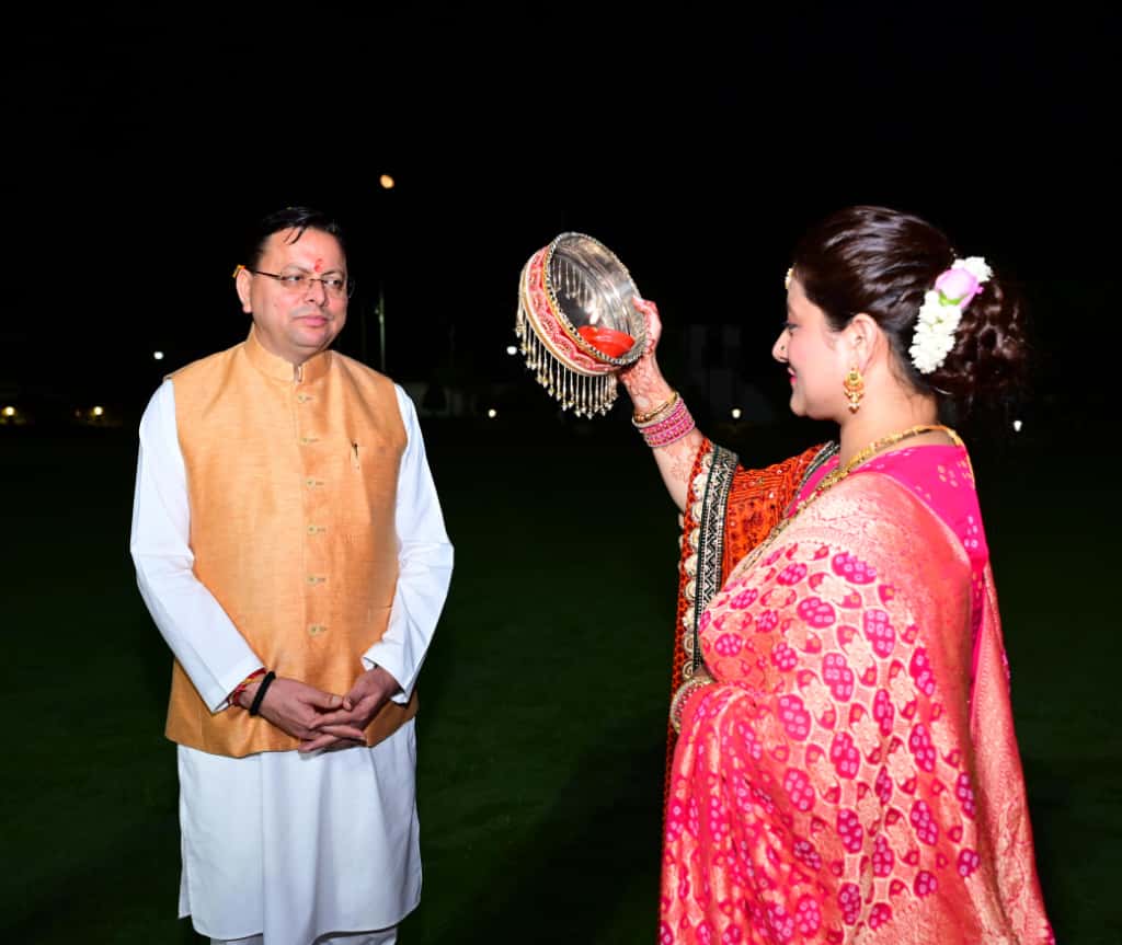मुख्यमंत्री पुष्कर सिंह धामी ने धर्मपत्नी गीता धामी के साथ मुख्यमंत्री आवास में मनाया करवा चौथ उत्सव