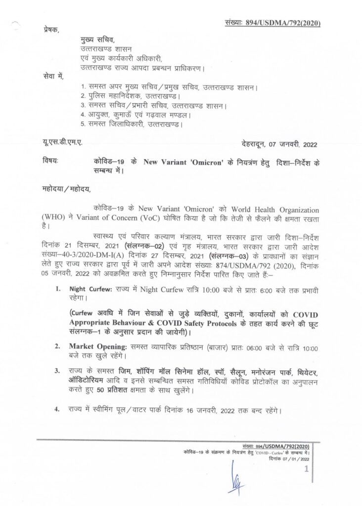 4. राज्य में स्वीमिंग पूल / वाटर पार्क दिनांक 16 जनवरी, 2022 तक बन्द रहेंगे।