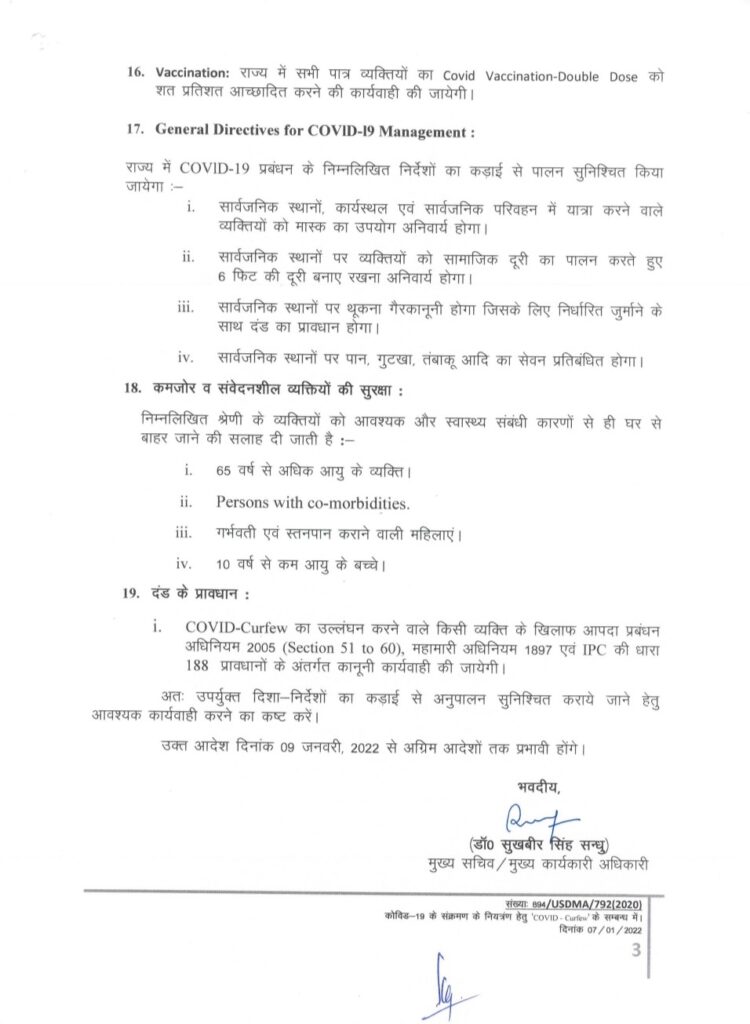 8. राजनैतिक रैली / धरना प्रदर्शन की दिनांक 16 जनवरी, 2022 तक अनुमति नहीं होगी।