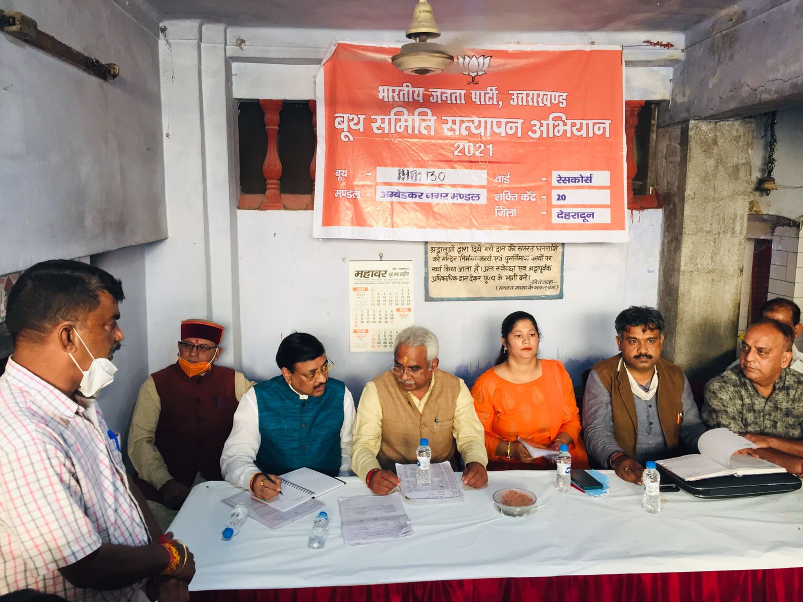 अध्यक्ष मदन कौशिक ने बूथ सत्यापन अभियान के तहत देहरादून महानगर में रेस कोर्स व एमकेपी वार्ड में दो बूथों का सत्यापन किया गया।