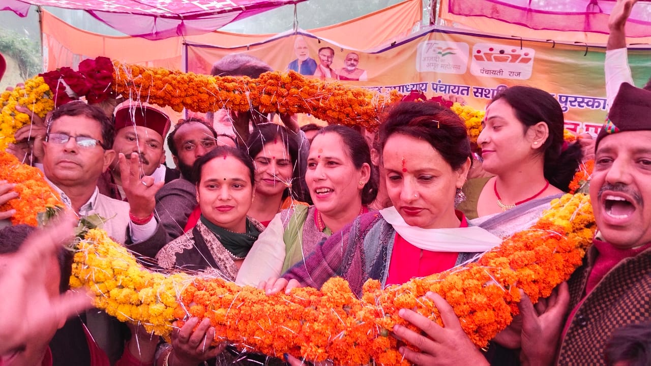 देहरादून, बिग न्यूज़ टूडे। चकराता में पंडित दीन दयाल उपाध्याय पंचायत सशक्तिकरण पुरस्कार से सम्मानित जिला पंचायत अध्यक्ष मधु चौहान का भाजपा चकराता मंडल के कार्यकर्ताओं ने भव्य सम्मान किया। भारी बारीश के बीच उत्साह से लवरेज समर्थकों ने उनका गर्मजोशी से स्वागत किया और कंधे पर उठा लिया।