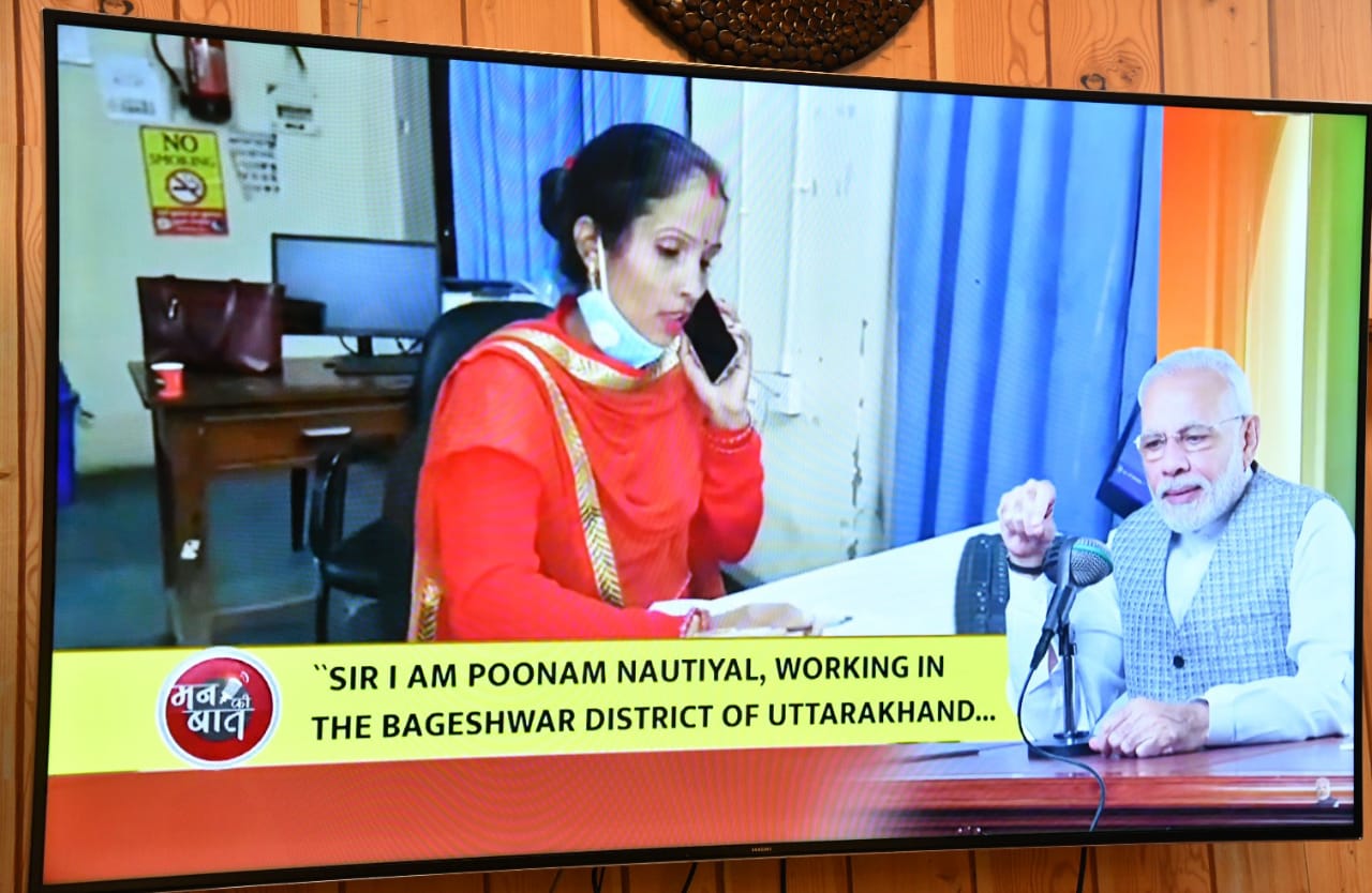 मुख्यमंत्री ने मन की बात के दौरान प्रधानमंत्री नरेंद्र मोदी से बात करने वाली बागेश्वर जनपद की पूनम नौटियाल से फोन से वार्ता कर उनके सराहनीय कार्य के लिए बधाई दी।