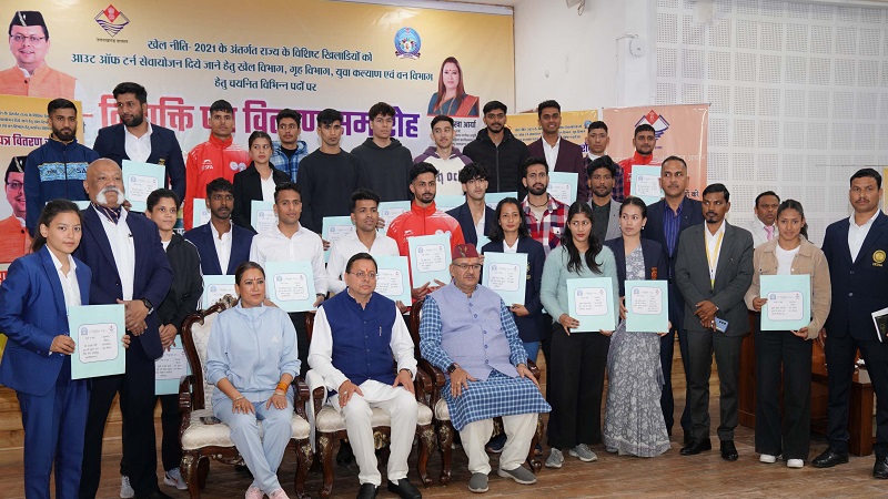 मुख्यमंत्री ने खेल नीति 2021 का उल्लेख करते हुये कहा कि इसके तहत हमने अन्तर्राष्ट्रीय व राष्ट्रीय खेलों में पदक जीतने वाले खिलाड़ियों को आउट ऑफ टर्न सरकारी नौकरी देने का जो वादा किया था, उसे हम आज धरातल पर उतरते हुए देख रहे हैं। उन्होने कहा कि हमने तय किया है कि जो भी युवा खेल की दुनिया में उत्तराखंड का नाम रोशन करेंगे, उन्हें प्रोत्साहित किया जायेगा। मुख्यमंत्री ने कहा कि खेलों के साथ ही खिलाड़ियों को अंतरराष्ट्रीय और राष्ट्रीय खेलों में प्रतिभाग करने के लिए तमाम सुविधाएं उपलब्ध कराई जा रही हैं तथा सरकार खिलाड़ियों को प्रोत्साहित करने और उन्हें उत्कृष्ट प्रदर्शन के लिए सम्मानित करके, खिलाड़ियों का मनोबल निरन्तर बढ़ा रही है। उन्होंने आउट ऑफ टर्न नियुक्त प्रक्रिया का जिक्र करते हुये कहा कि यह प्रक्रिया सभी अन्तर्राष्ट्रीय, राष्ट्रीय पदक विजेताओं के लिए संजीवनी का कार्य करेगी।