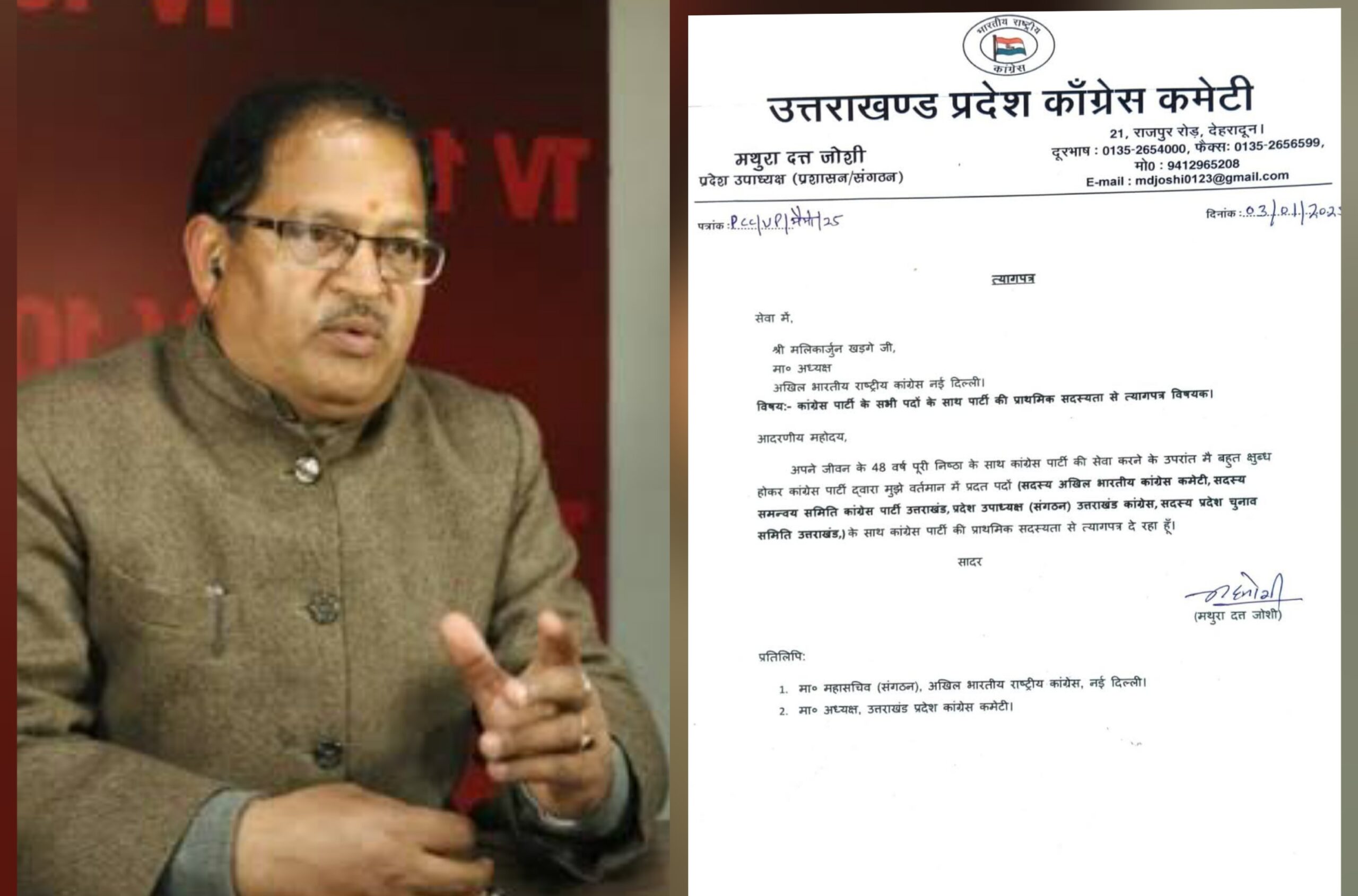 एक बड़ा मामला पार्टी के प्रदेश उपाध्यक्ष संगठन मथुरा दत्त जोशी की नाराजगी और बगावत का भी हैI मथुरा दत्त जोशी ने आज शनिवार को पार्टी के राष्ट्रीय स्तर से लेकर प्रदेश स्तर के सभी पदों से इस्तीफा दे दिया है I