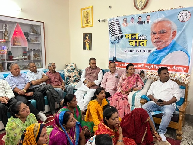 राष्ट्र को सम्बोधित प्रधानमंत्री नरेन्द्र मोदी के मन की बात कार्यक्रम को सुनने के लिए प्रदेश के कृषि मंत्री गणेश जोशी रविवार को देहरादून के मसूरी विधानसभा क्षेत्रार्न्तगत बूथ संख्या 08 लौहारवाला में उपस्थित रहे।