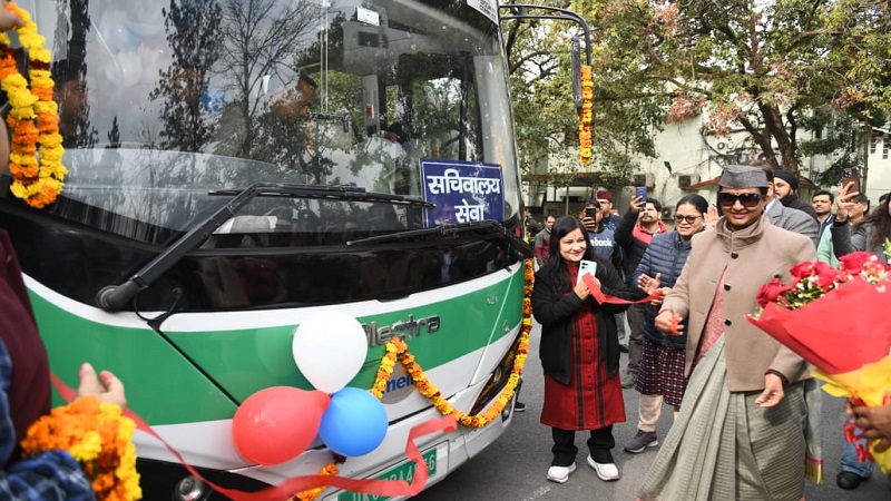 देहरादून, बिग न्यूज़ टूडे: सोमवार को सचिवालय के कार्मिकों के लिए मुख्य सचिव ने सचिवालय कॉलोनी केदारपुरम से सचिवालय के लिए इलेक्ट्रिक बस सेवा का शुभारम्भ किया। इस बस सेवा के माध्यम से नियमित रूप से सुबह कार्यालय समय पर सचिवालय के कार्मिकों को सचिवालय कॉलोनी केदारपुरम से सुभाष रोड सचिवालय तथा शाम को सचिवालय से सचिवालय कॉलोनी केदारपुरम के लिए यात्रा सुविधा उपलब्ध हो सकेगी।