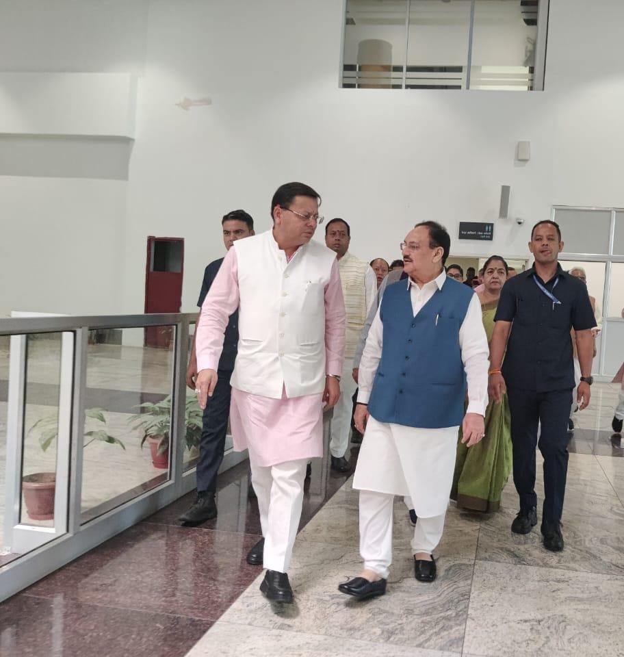 BIG NEWS TODAY : केंद्रीय स्वास्थ्य एवं परिवार कल्याण मंत्री और भाजपा के राष्ट्रीय अध्यक्ष जे. पी नड्डा के देवभूमि उत्तराखंड आगमन पर मुख्यमंत्री पुष्कर सिंह धामी ने जौलीग्रांट एयरपोर्ट पर स्वागत किया। इस अवसर पर मुख्यमंत्री ने उन्हें हाउस ऑफ हिमालयाज के उत्पाद भेंट किए।