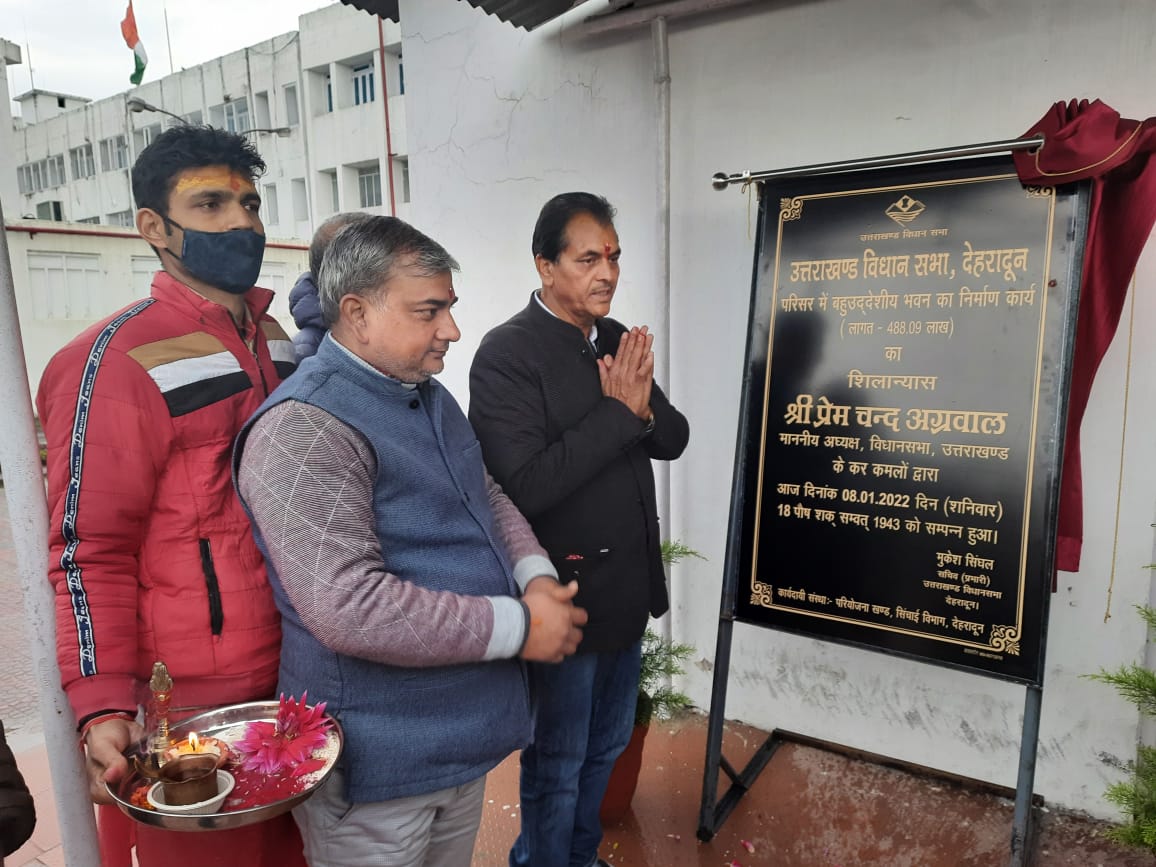 देहरादून 8 जनवरी| उत्तराखंड विधानसभा परिसर देहरादून में 4 करोड़ 88 लाख रुपए की लागत से बहुउद्देशीय भवन का निर्माण किया जा रहा है जिसका शिलान्यास आज उत्तराखंड विधानसभा अध्यक्ष प्रेमचंद अग्रवाल ने विधिवत पूजा अर्चना के संग किया|