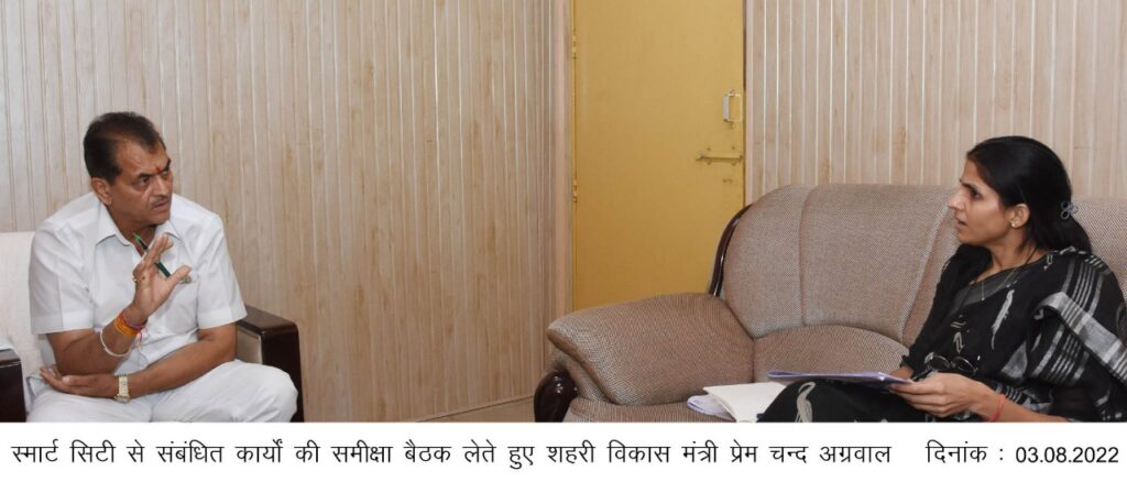 शहरी विकास मंत्री डॉ प्रेमचंद अग्रवाल ने स्मार्ट सिटी के कार्यों की समीक्षा बैठक की। उन्होंने सीईओ स्मार्ट सिटी कार्यों में तेजी लाने के निर्देश दिए। कहा कि कार्य में किसी प्रकार की लापरवाही या कोताही बर्दाश्त नहीं की जाएगी