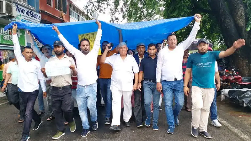 दरअसल, पूर्व विधायक रणजीत सिंह रावत (के नेतृत्व में कांग्रेस कार्यकर्ताओं ने बिजली विभाग के कार्यालय कूच किया. भारी बारिश के बावजूद कांग्रेस कार्यकर्ता तिरपाल ओढ़कर विद्युत विभाग के कार्यालय पहुंचे. उन्होंने बीजेपी सरकार, स्थानीय विधायक और सांसद समेत बिजली विभाग के खिलाफ जमकर प्रदर्शन किया. पूर्व विधायक रणजीत सिंह रावत ने कहा कि ये मजबूरी और सब्र की इंतेहा है. किसानों के अभी तक धान नहीं लगे हैं. बोरिंग और ट्यूबवेल चलाने के लिए बिजली तक नहीं मिल रही है. इससे किसान काफी परेशान हैं. आम जनता को काफी परेशानियों का सामना करना पड़ रहा है.