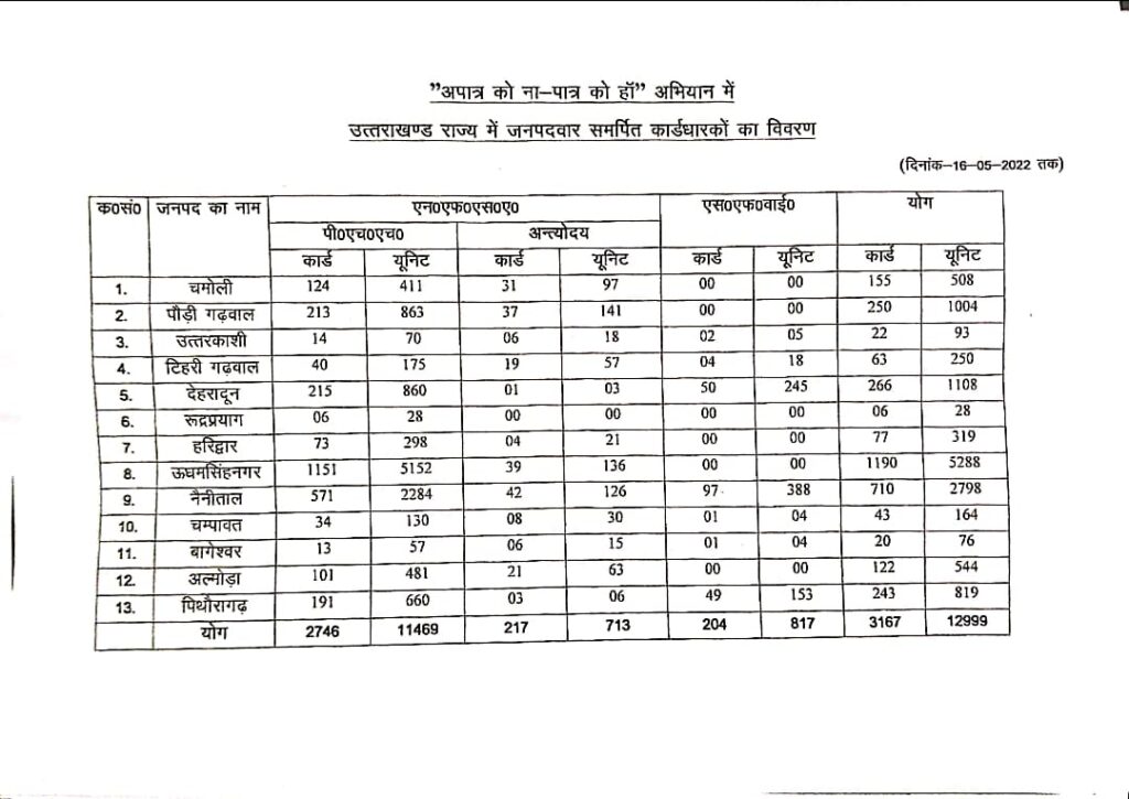 बैठक में रेखा आर्य ने अधिकारियों को पात्र को हां आपात्र को ना मुहिम के तहत अभी तक विभाग के द्वारा क्या कार्यवाही की है , की विस्तृत रिपोर्ट ली। साथ ही सुझाव भी लिए। मंत्री ने कहा कि खाद्य विभाग को कहा गया है कि सभी राशन की दुकानों में सूची लगानी होगी जिसमें पात्र और अपात्र के मानक सहित 1967 टोल फ्री नंबर की जानकारी देनी होगी। वहीं उन्होंने कहा कि जिस भी ग्रामसभा से अपात्र का नाम कटेगा तो उसी ग्राम सभा से ही पात्र व्यक्ति का नाम राशन कार्ड में जोड़ा जाएगा। मंत्री ने बताया कि किसी किसी जिले से लोग स्वयं ही अपना नाम कटवा रहे है और एक हजार से पंद्रह सौ नाम भी अपात्रों के कटे हैं । इस महत्वपूर्ण अभियान के लिए मंत्री ने कहा कि इस मुहिम के प्रचार प्रसार के लिए नगरपालिका की कूड़ा उठाने की गाड़ियों , गैस की गाड़ियों, पंचायत सेक्रेटरी के माध्यम से जनजागरण चलाया जाएगा।